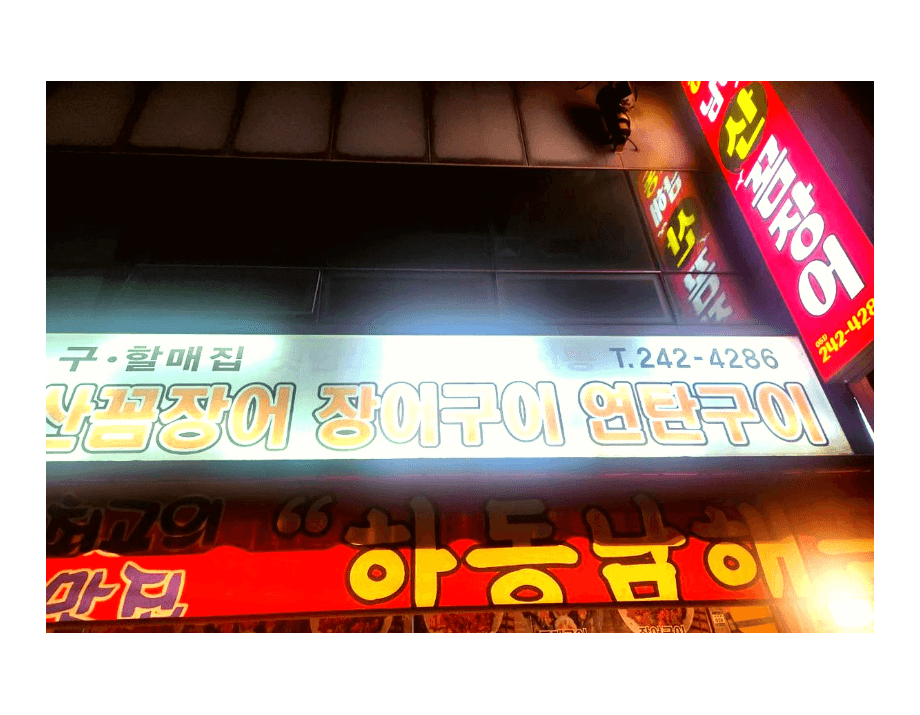 The red sign of "Hadong Namhae San Kkomjangeo" (하동 남해 산 꼼장어) is a beacon for locals. It specializes in Yeontan-gui—food cooked over traditional coal briquettes. It’s loud, it’s unpretentious, and it’s exactly where you want to be for an authentic Busan night.